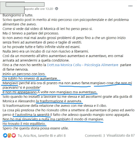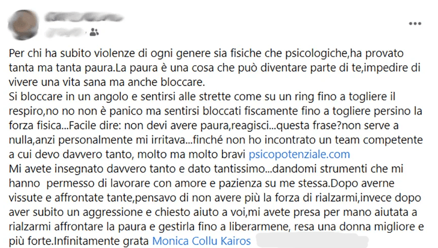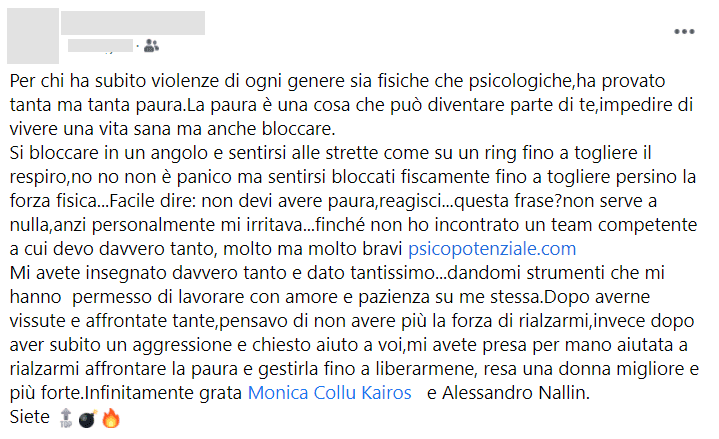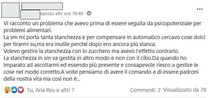 Puoi trovare la videotestimonianza di Giovanna sul gruppo Fb Psicopotenziale